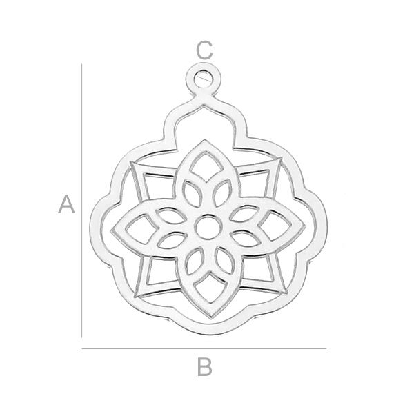 A=21,50 mm; B=18,00 mm; C=1,00 mm, sterling silber (AG-925)