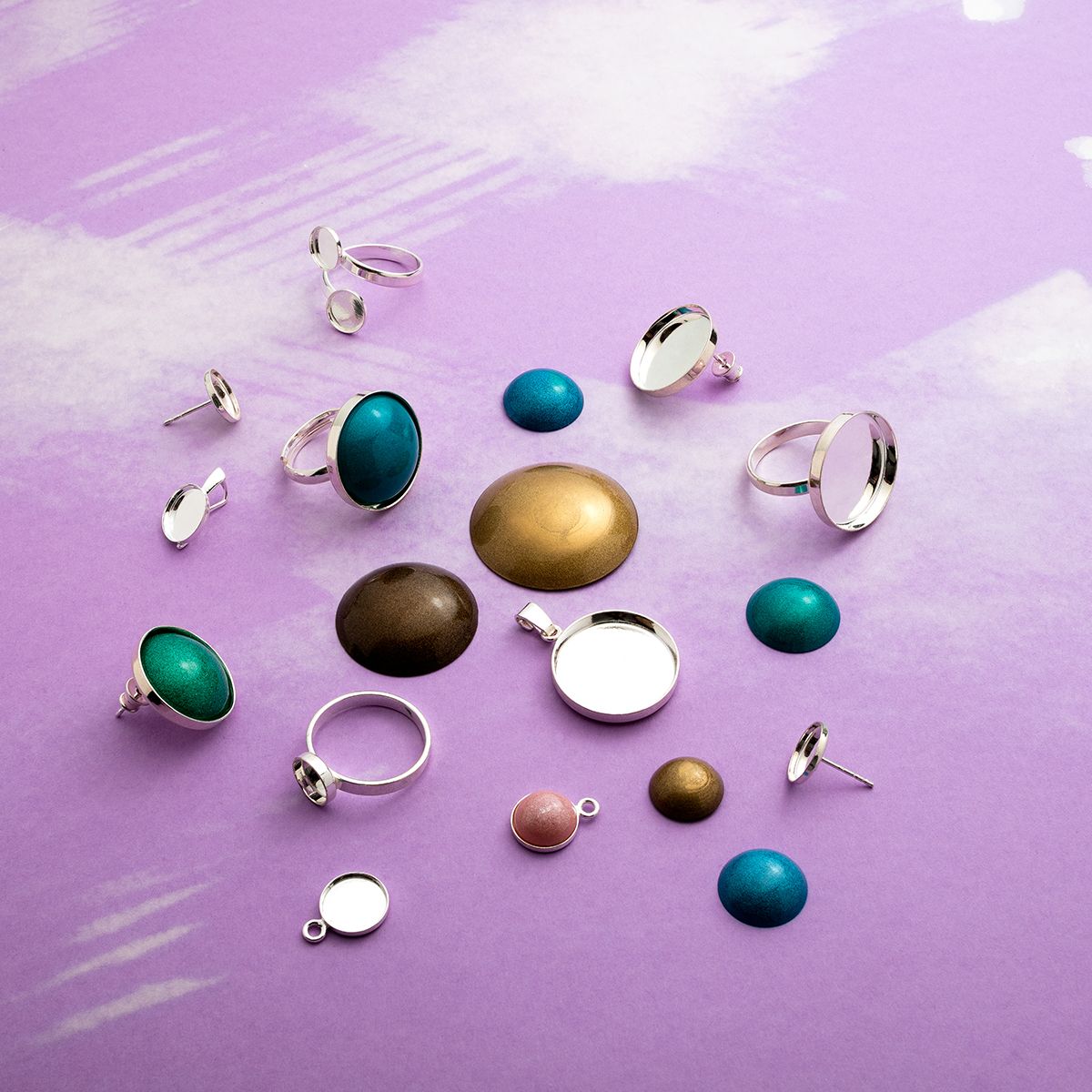 Die Fassung eignet sich hervorragend als Basis für Epoxidharz-Ohrringe, kann aber auch für 10-mm-Kabochons, Emaille, Modelliermassen oder kleine flache Dekoelemente verwendet werden. Dadurch ist sie ein äußerst vielseitiges Ohrring-Halbfabrikat für Resin, geeignet für minimalistische ebenso wie künstlerische Projekte.