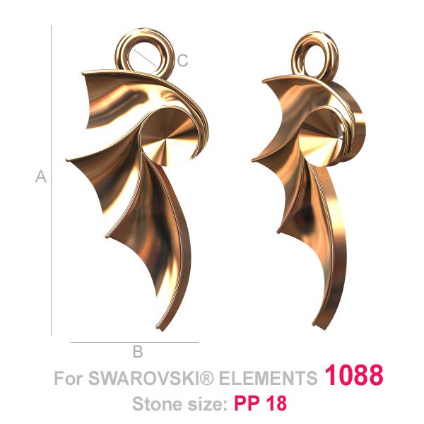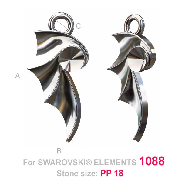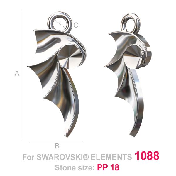 Anhänger Drachenflügel - Basis für SW-Kristall 1088 PP 18, Silber AG 925
