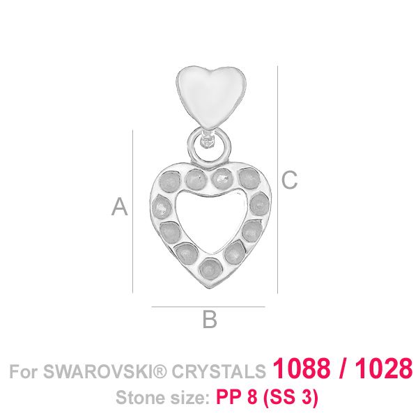 A=10,50 mm; B=10,00 mm; C=18,00 mm, sterling silber (AG-925)