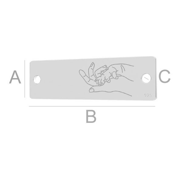 A=7,00 mm; B=23,00 mm; C=1,50 mm, sterling silber (AG-925)