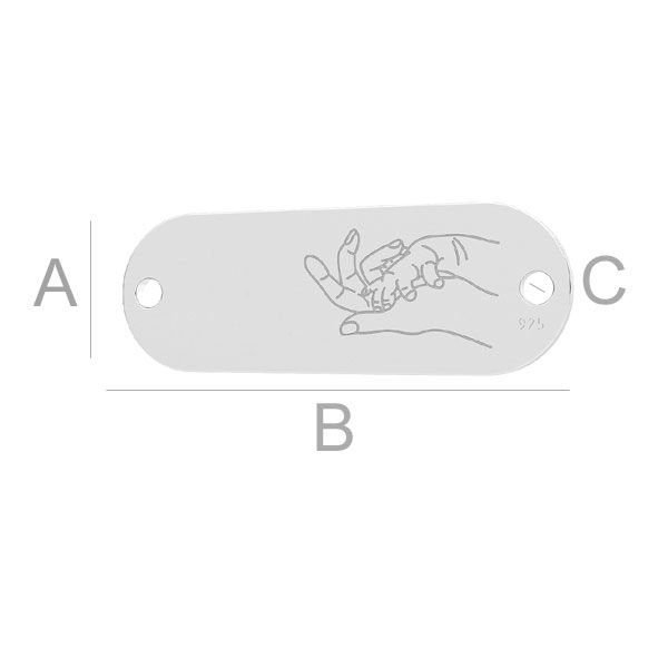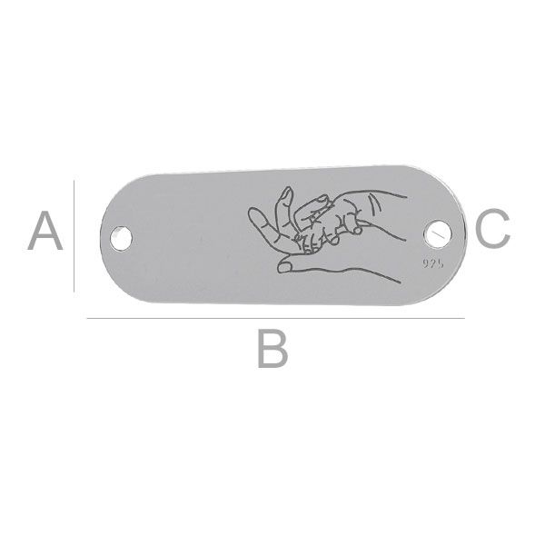 A=8,00 mm; B=23,00 mm; C=1,50 mm, sterling silber (AG-925)