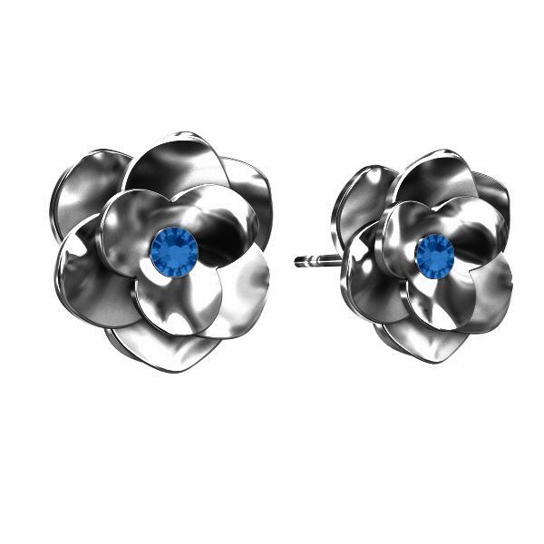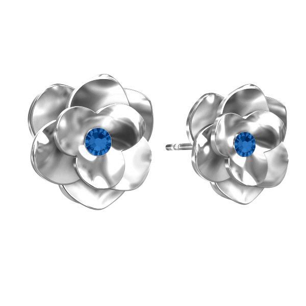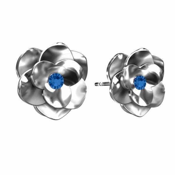 Steckerohrring Rose mit blauem Kristall CAPRI BLUE, Silber AG 925