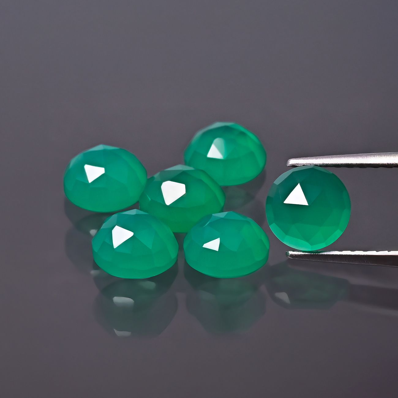 Runder Stein, Rosenschliff - Grüner Achat 4 mm. Tiefgrüner Achat mit ROSE CUT und flacher Basis, ideal für elegante Schmuckdesigns. Perfekt für alle, die ausdrucksstarke, klassische Accessoires schätzen.