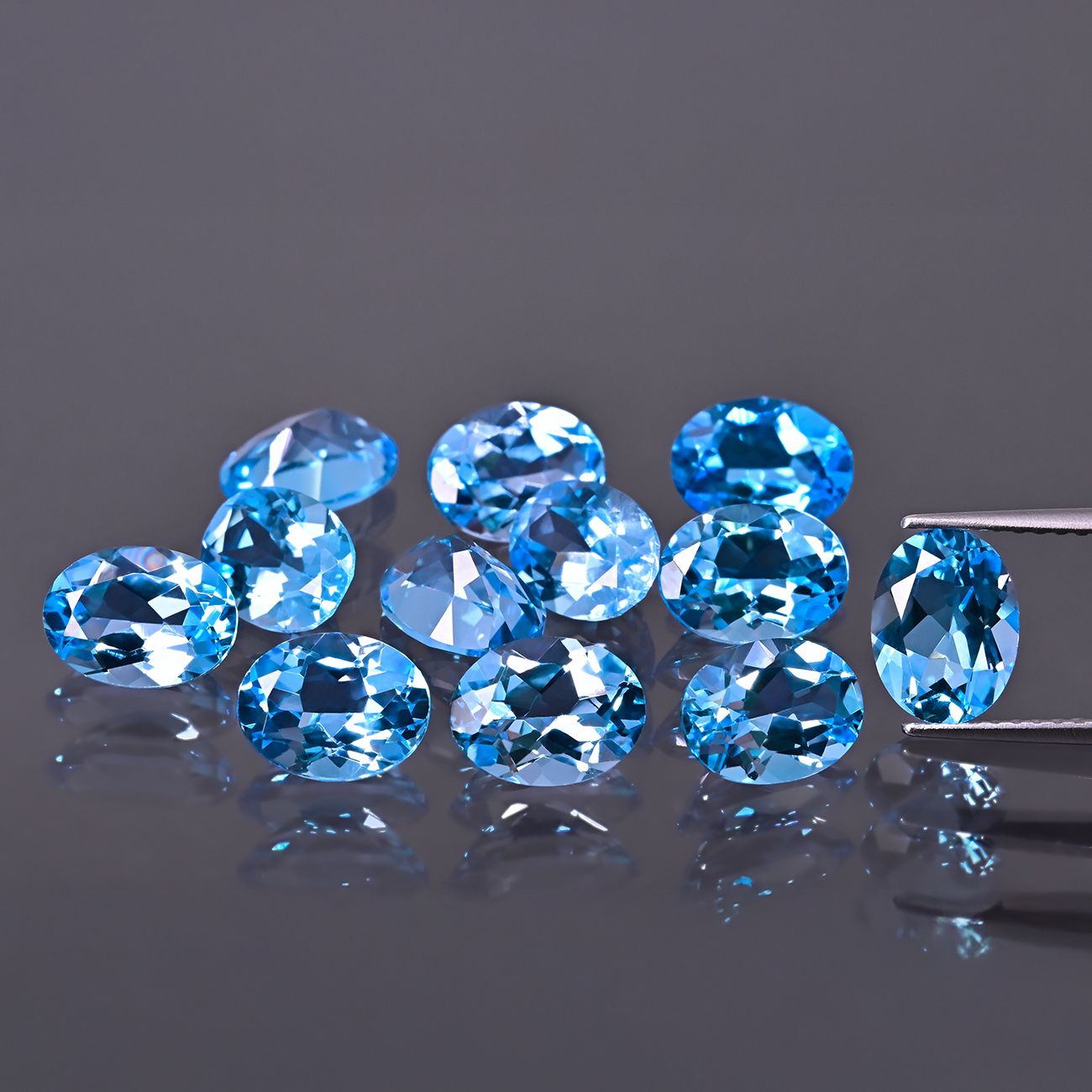 Swiss blue Topas im Kegelschliff mit Maßen von 7x5 mm. Natürlicher Stein mit intensiver blauer Farbe und klassischer ovaler Form. Der präzise Schliff unterstreicht seinen Glanz – ideal für luxuriöse Ringe, Ohrringe und Anhänger.