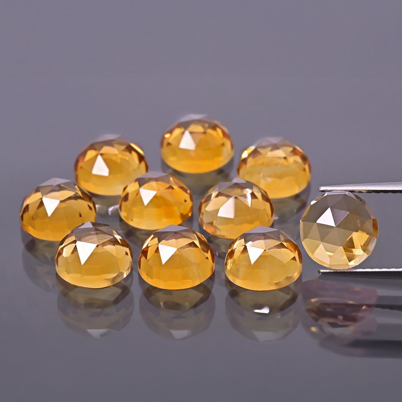 Runder Stein, Rosenschliff - Citrin A 6 mm. Hochwertiger Citrin mit intensiver, warmer Farbe, ROSE CUT mit flacher Basis, ideal für elegante Schmuckdesigns.