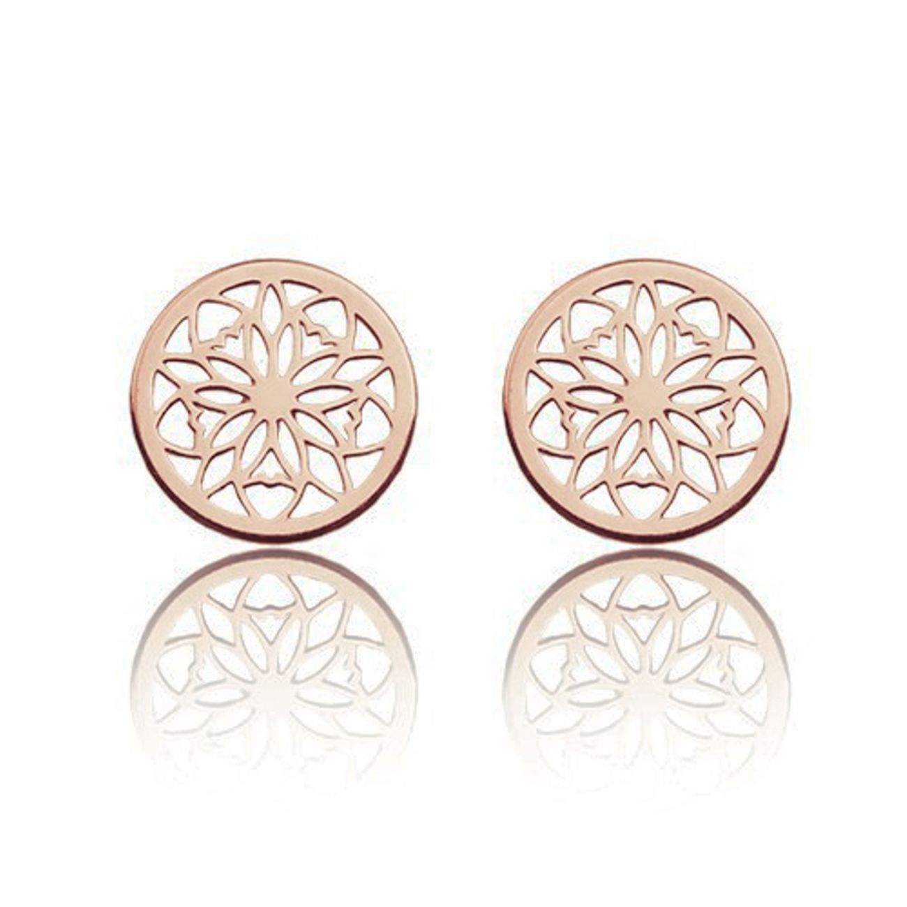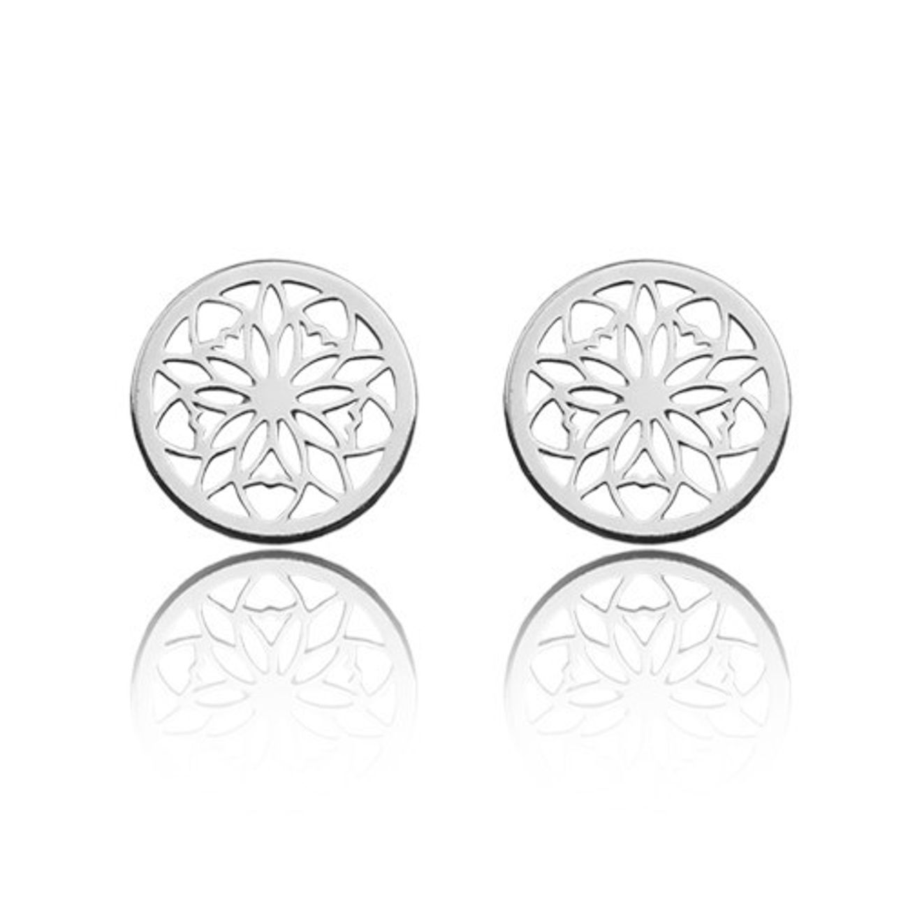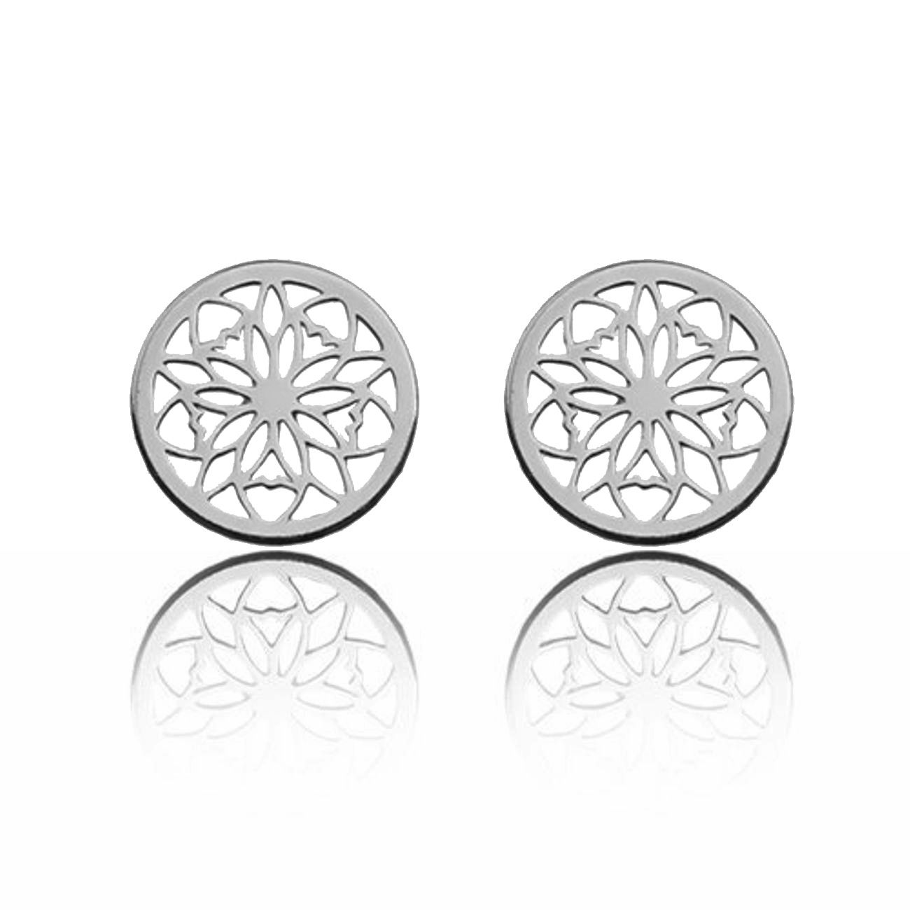 Steckohrringe mit filigranem Rosettenmotiv, die Eleganz und Leichtigkeit vereinen. Das symmetrische Muster verleiht ihnen einen zeitlosen Charakter. Gefertigt aus 925er Sterlingsilber mit präziser Verarbeitung. Ideal für Alltag und besondere Anlässe.