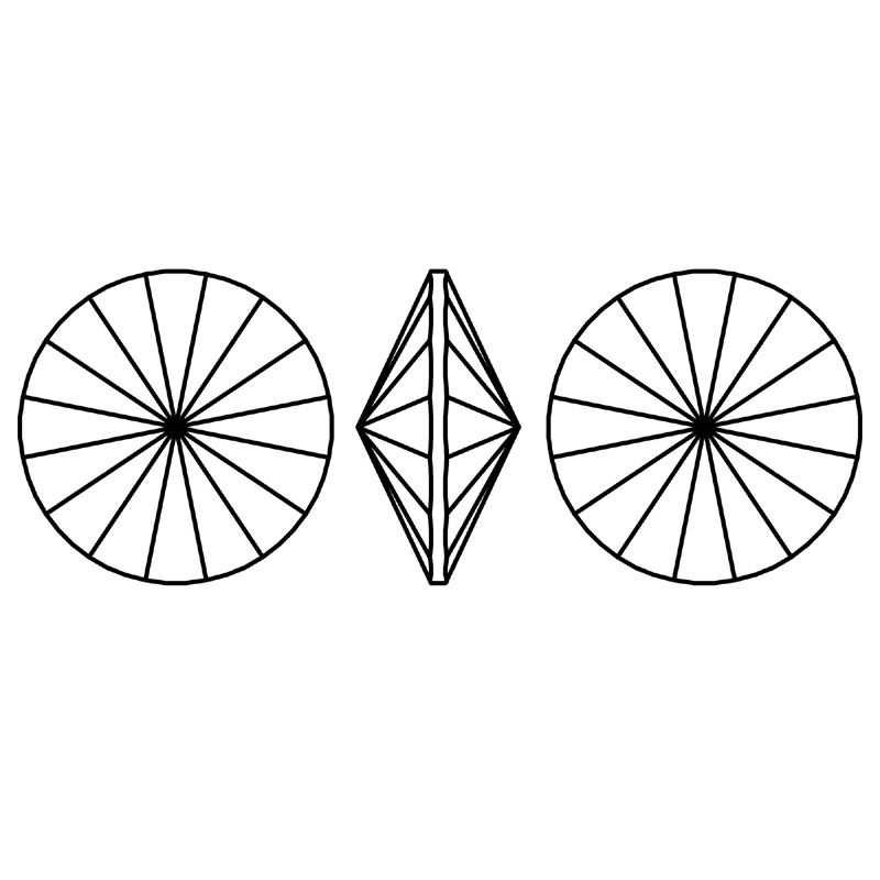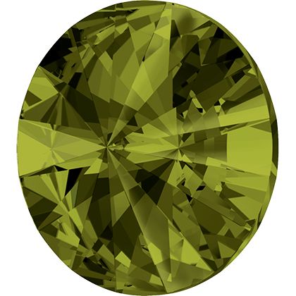 Runder Rivoli-Stein in der Farbe Olivine F. Er zeichnet sich durch eine symmetrische Form und einen intensiven Grünton mit klarem Glanz aus. Verwendet in Schmuck, dekorativen Elementen und kreativen Projekten, bei denen eine kräftige Farbe und eine klassische Steinform gefragt sind.
