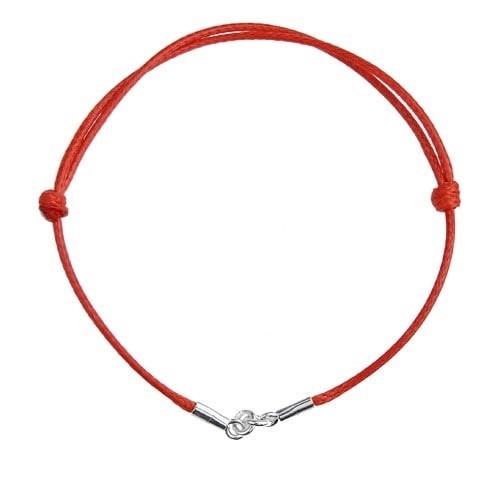 Gewachstes Kordelarmband - verstellbar - rot, silber AG 925