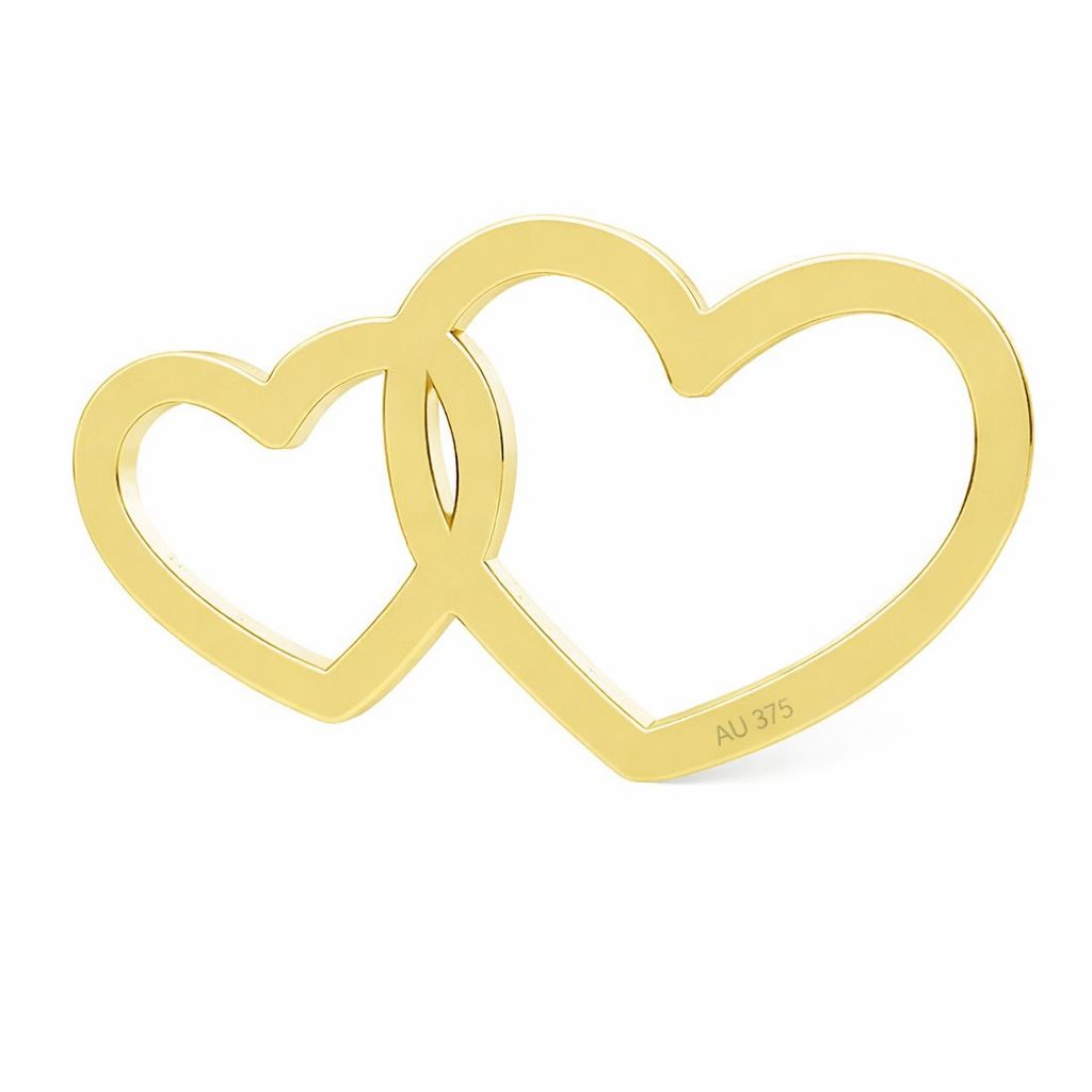 Der Verbinder in Form von zwei verbundenen Herzen aus AU 375 Gold ist ein feines Schmuckhalbprodukt mit symbolischem Charakter. Das Herzmotiv eignet sich für personalisierte Armbänder und zarte Halsketten.