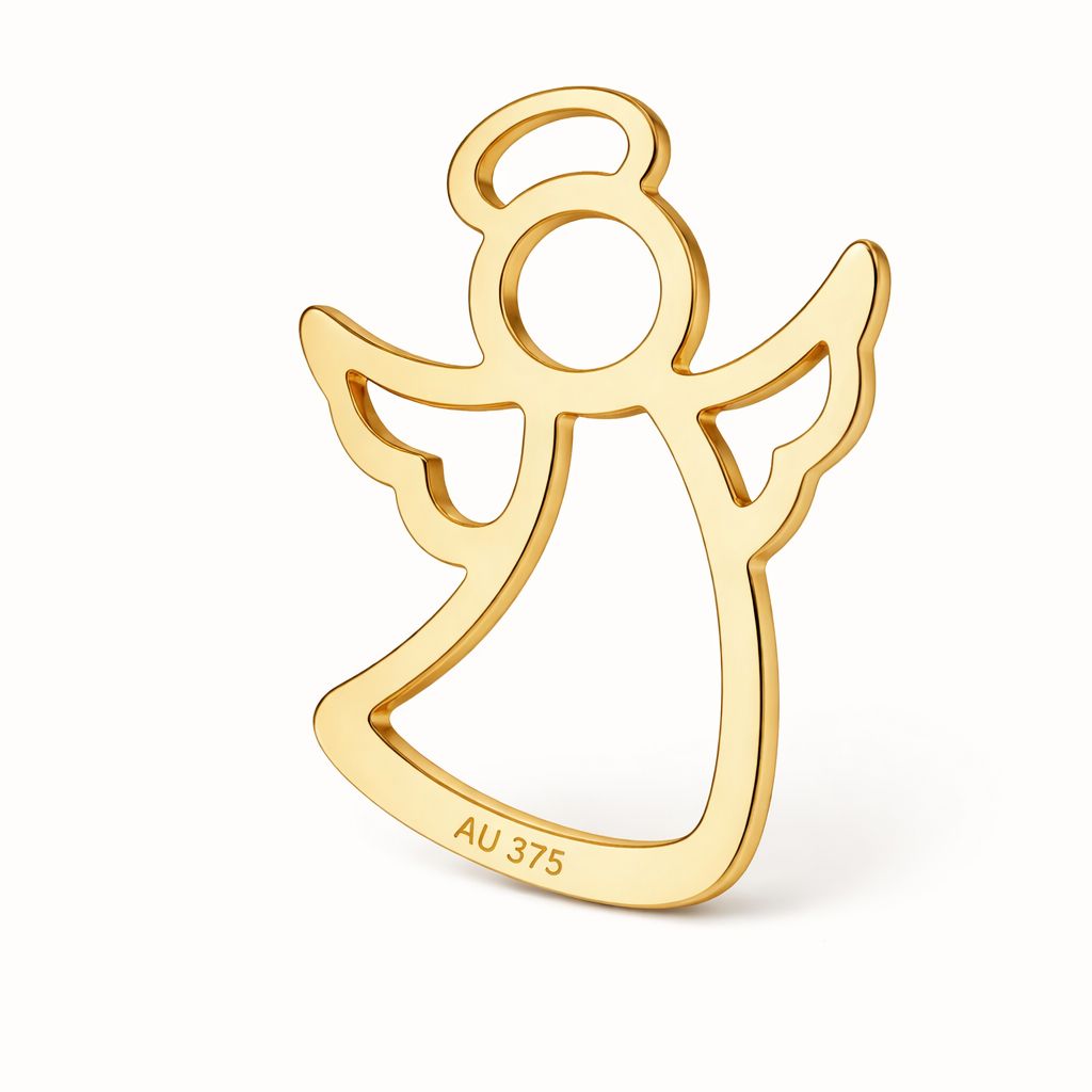 Der durchbrochene Engel-Verbinder aus AU 375 Gold ist ein präzises Schmuckhalbprodukt mit leichter und dekorativer Form. Das Schutzsymbol eignet sich für Gedenk-, religiöse und personalisierte Schmuckprojekte.