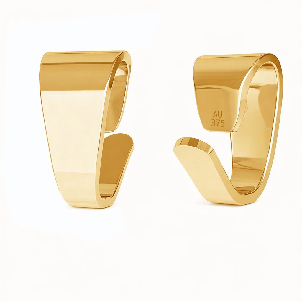 Der schlichte Klemmanhänger aus AU 375 Gold ist ein funktionales Schmuckhalbprodukt zur sicheren und ästhetischen Befestigung von Anhängern. Die kompakte Größe eignet sich für professionell gefertigten Schmuck.