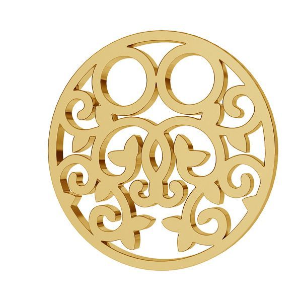 Der durchbrochene Verbinder im Celebrytka-Stil in Form einer runden Platte aus AU 375 Gold ist ein minimalistisches Schmuckhalbprodukt mit leichter und universeller Form. Die klassische Gestaltung eignet sich für personalisierte und moderne Schmuckprojekte.
