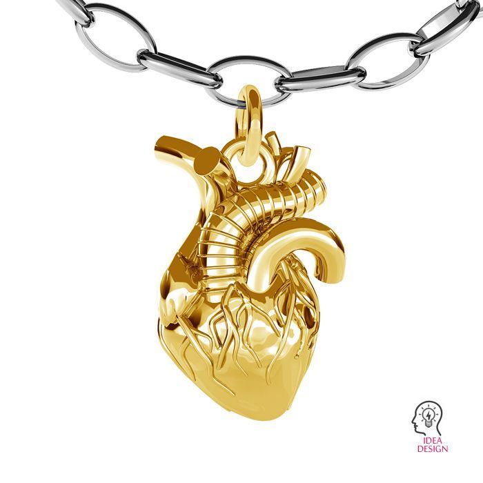 Das anatomische Herz ist ein ausdrucksstarkes Schmuckmotiv mit universellem Charakter. Der Anhänger aus Messing symbolisiert Leben und Emotionen und eignet sich für Damen- und Herrenschmuck. Ideal für Ketten, Armbänder, Hängeohrringe und Charms.