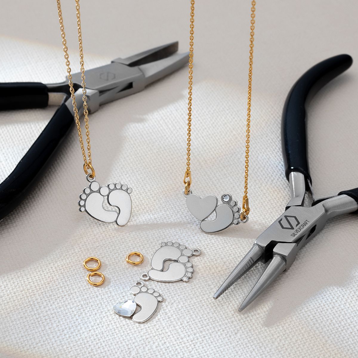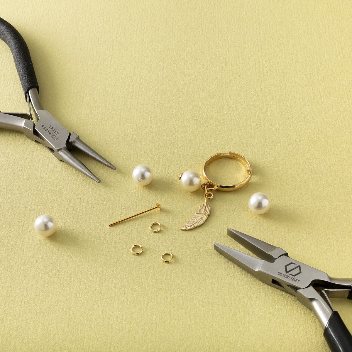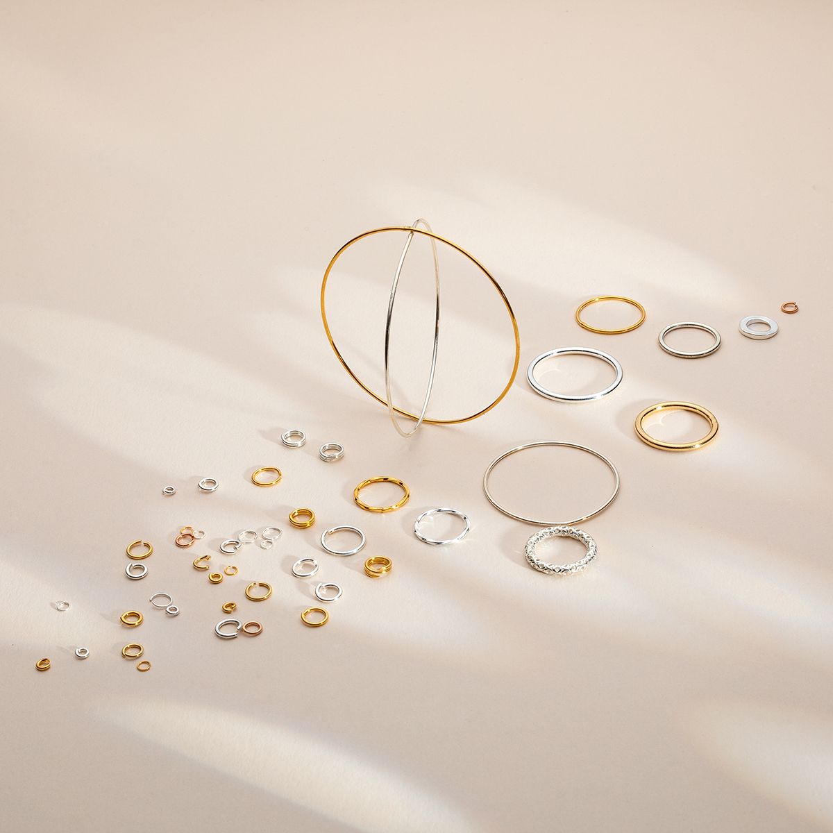 Der geschnittene Biegering ist ein grundlegendes Schmuckelement. Aus Messing gefertigt, mit 2,7 mm Durchmesser und 1 mm Drahtstärke, eignet er sich zum Verbinden von Anhängern, Verschlüssen und Ketten. Die offene Form ermöglicht einfaches Öffnen und Schließen.