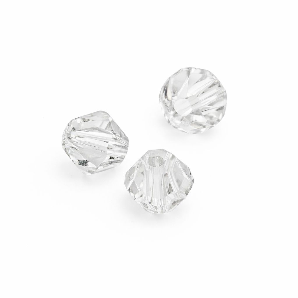 Facettierte Perle in Bicone Form mit 4,0 mm Größe in der Farbe Crystal. Modell 5328 besitzt eine zentrale Durchgangsbohrung zum Auffädeln auf Faden oder Draht. Der Doppelkegelschliff sorgt für gleichmäßige Lichtreflexion. Die Farbe Crystal ist klar und transparent ohne AB Beschichtung. Geeignet für Armbänder, Halsketten, Ohrringe und dekorative Elemente.