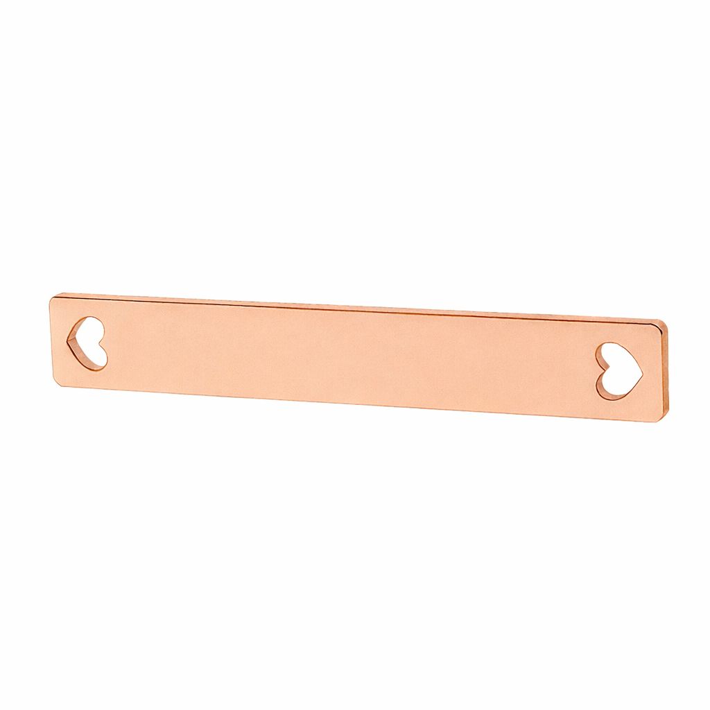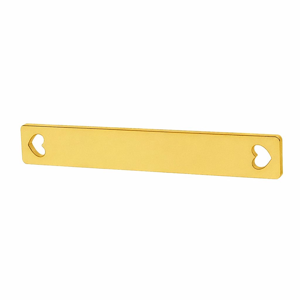 Verbinder Anhänger rechteckige Platte ist ein minimalistisches Schmuckelement mit länglicher Form. Gefertigt aus Messing, besitzt er eine glatte Oberfläche und zwei herzförmige Öffnungen zur Montage. Ideal als Verbinder für Armbänder und Ketten oder zur Personalisierung.
