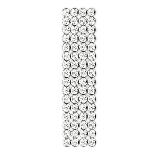 Elastisches dekoratives Meshband mit vier parallelen Reihen von Steinen in der Farbe Crystal. Die Steine sind werkseitig auf einem Trägermaterial befestigt und bilden eine gleichmäßige, funkelnde Struktur. Ideal für Dekorationen, Textilien, Bühnenaccessoires, floristische Arbeiten und DIY-Projekte.